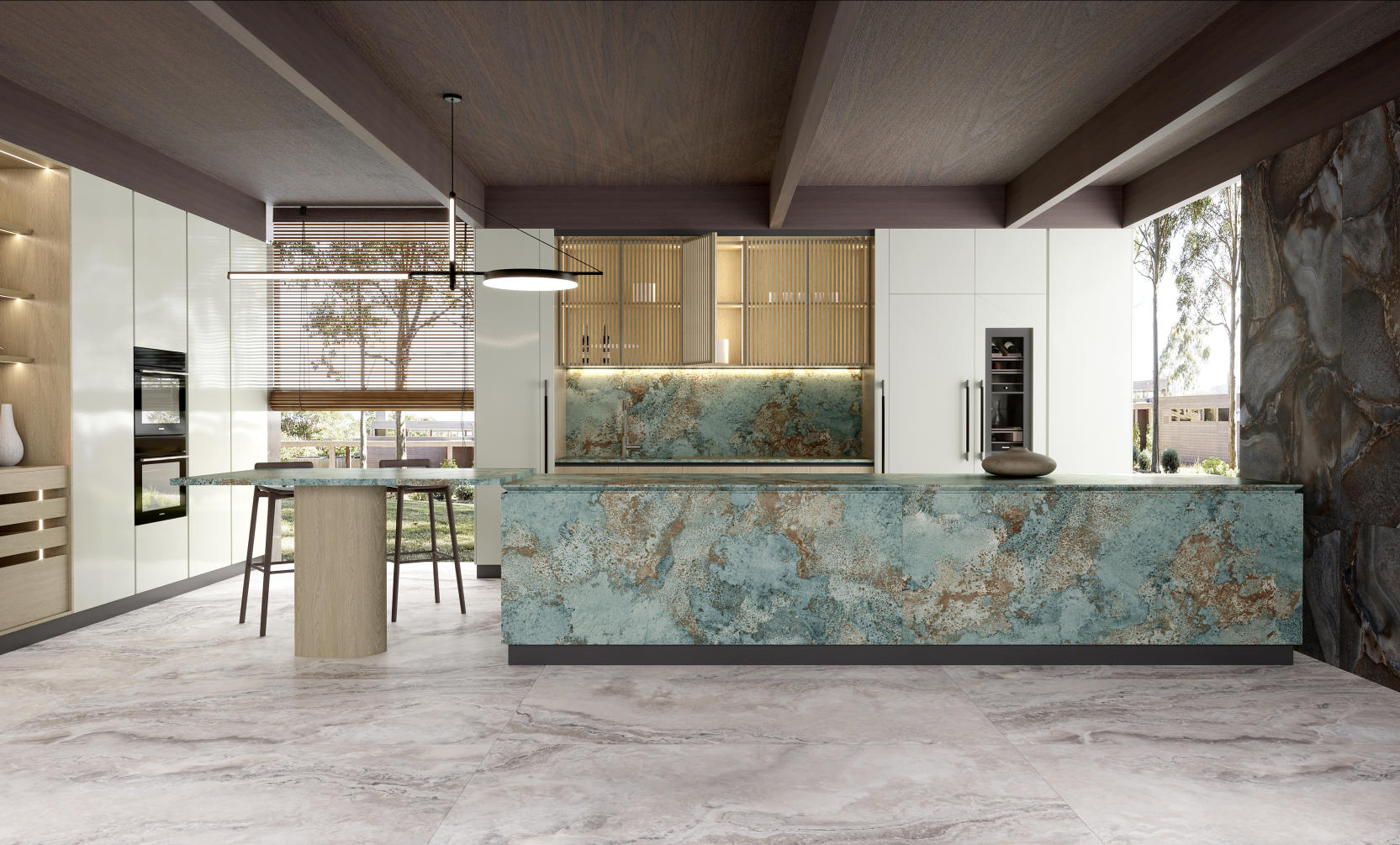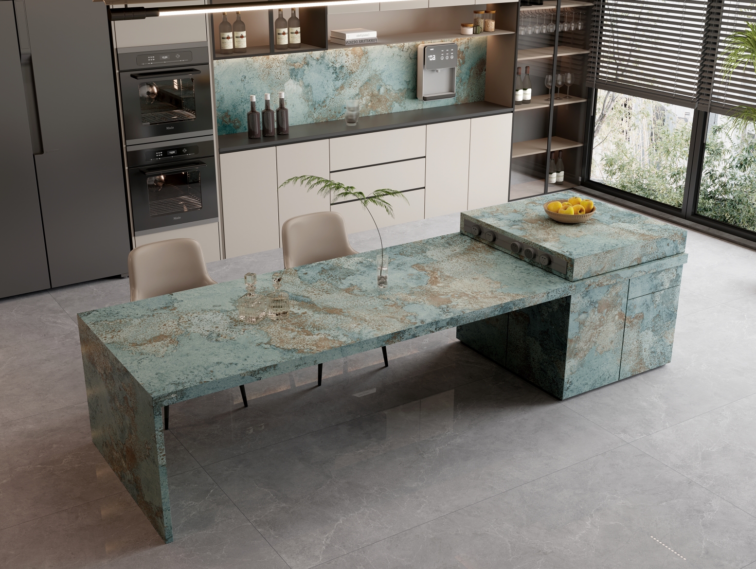 似將春日綠野盛景封印其中。翠色欲滴的鮮活色調,與靈動變幻的自然紋理交織,鋪陳開來,仿若踏入蔥郁且神秘的生態奇境,讓每一寸空間都盈滿清新蓬勃與悠然詩意。