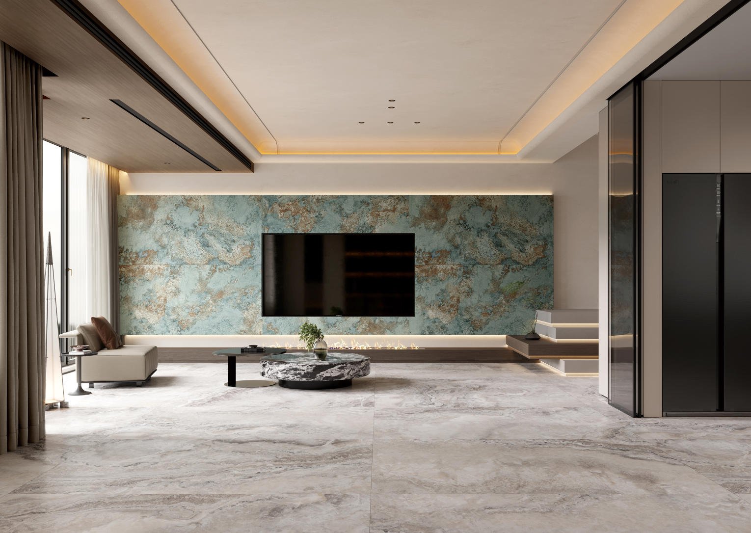 空間應用:酒店大堂、背景墻等高端場所;室內墻面/地面,客廳、餐廳、廚房、臥室衛生間、陽臺、玄關、過道等