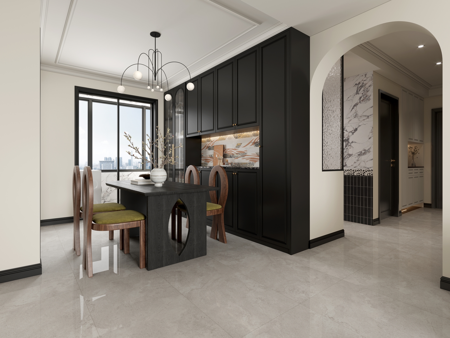 獨特時尚的米杏色調(diào),變幻莫測的漸變紋理流動,彷如歲月的雕琢,給空間帶來連貫、完整、延伸的無垠視界。