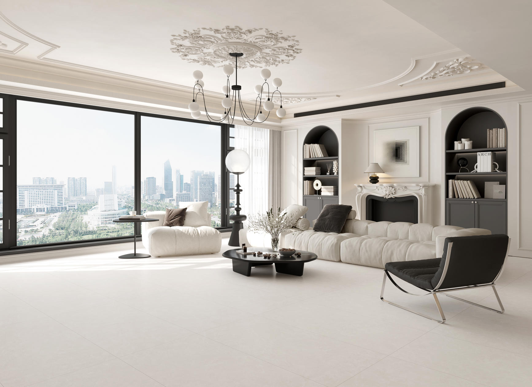 獨(dú)特時(shí)尚的米杏色調(diào),變幻莫測(cè)的漸變紋理流動(dòng),彷如歲月的雕琢,給空間帶來連貫、完整、延伸的無垠視界。