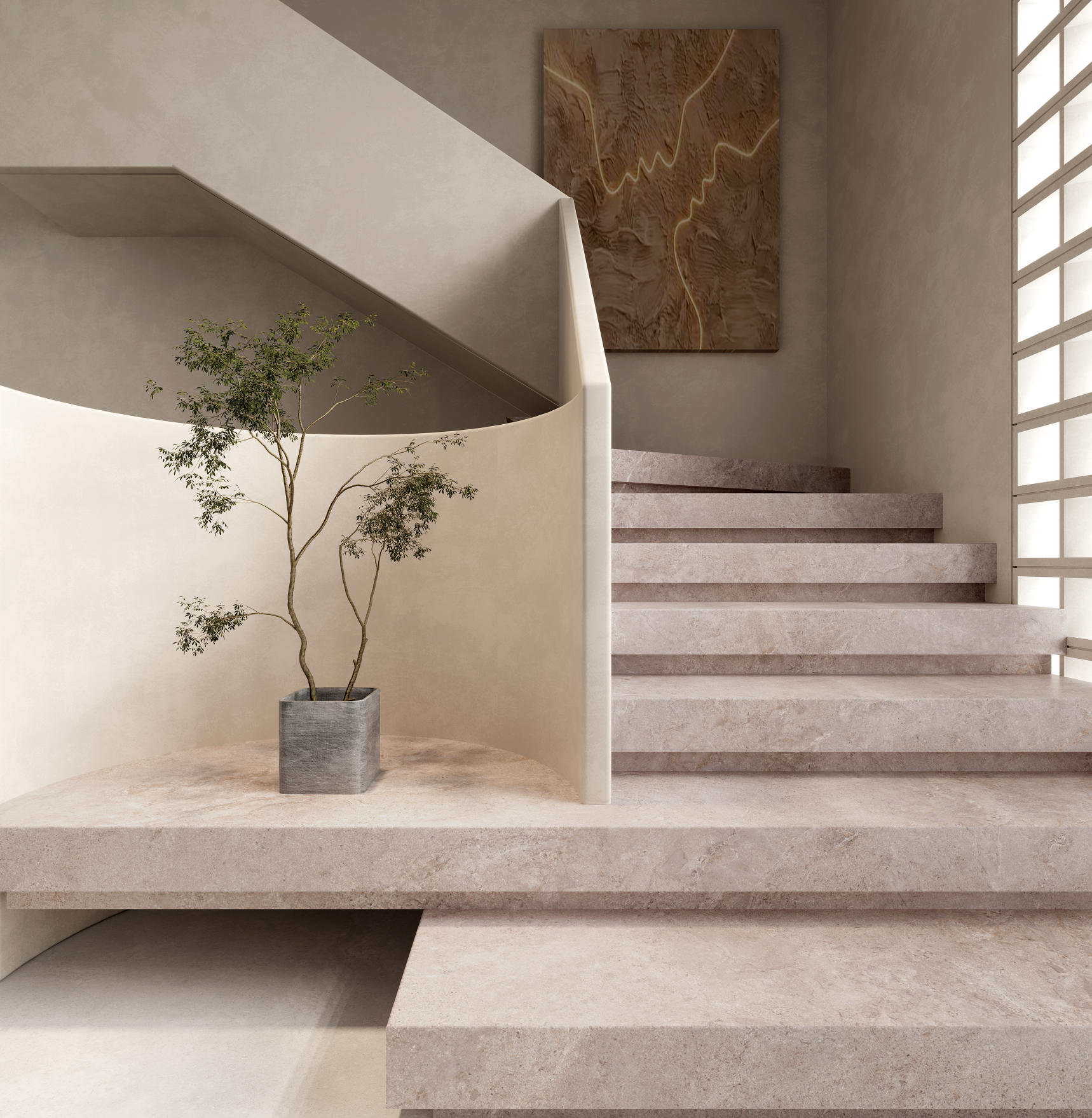 設計靈感源于對烏拉爾山脈自然基因的深刻解讀,冰川以千年時光雕琢山體,在巖石表面留下深淺不一的歲月痕跡,風穿過松林,雪水漫過巖層,自然的力量與堅韌,在這片土地上書寫著永恒的史詩。紋理如俯瞰的山脈紋理,深灰、棕褐交織,似冰川蝕刻山體的的痕跡,將烏拉爾山峰的雄渾與神秘凝于材質之上,把自然的磅礴與堅韌融入生活空間。