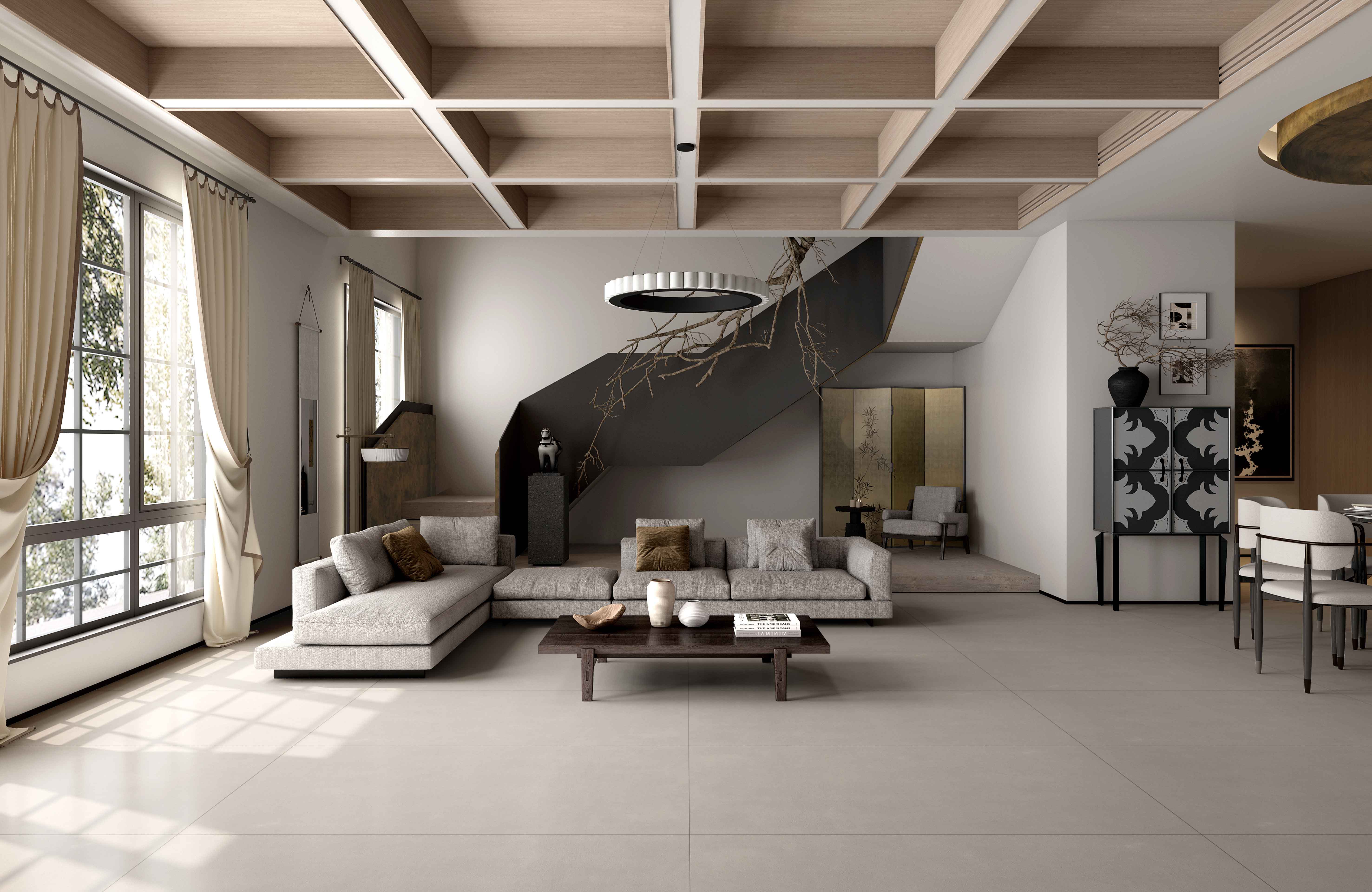 靈感源自化繁為簡的素色水泥,延續低飽和度淺卡其色,柔和光澤點點于空間,還一室生活的藝術氛圍,讓空間有著獨特的質感與寧靜感。