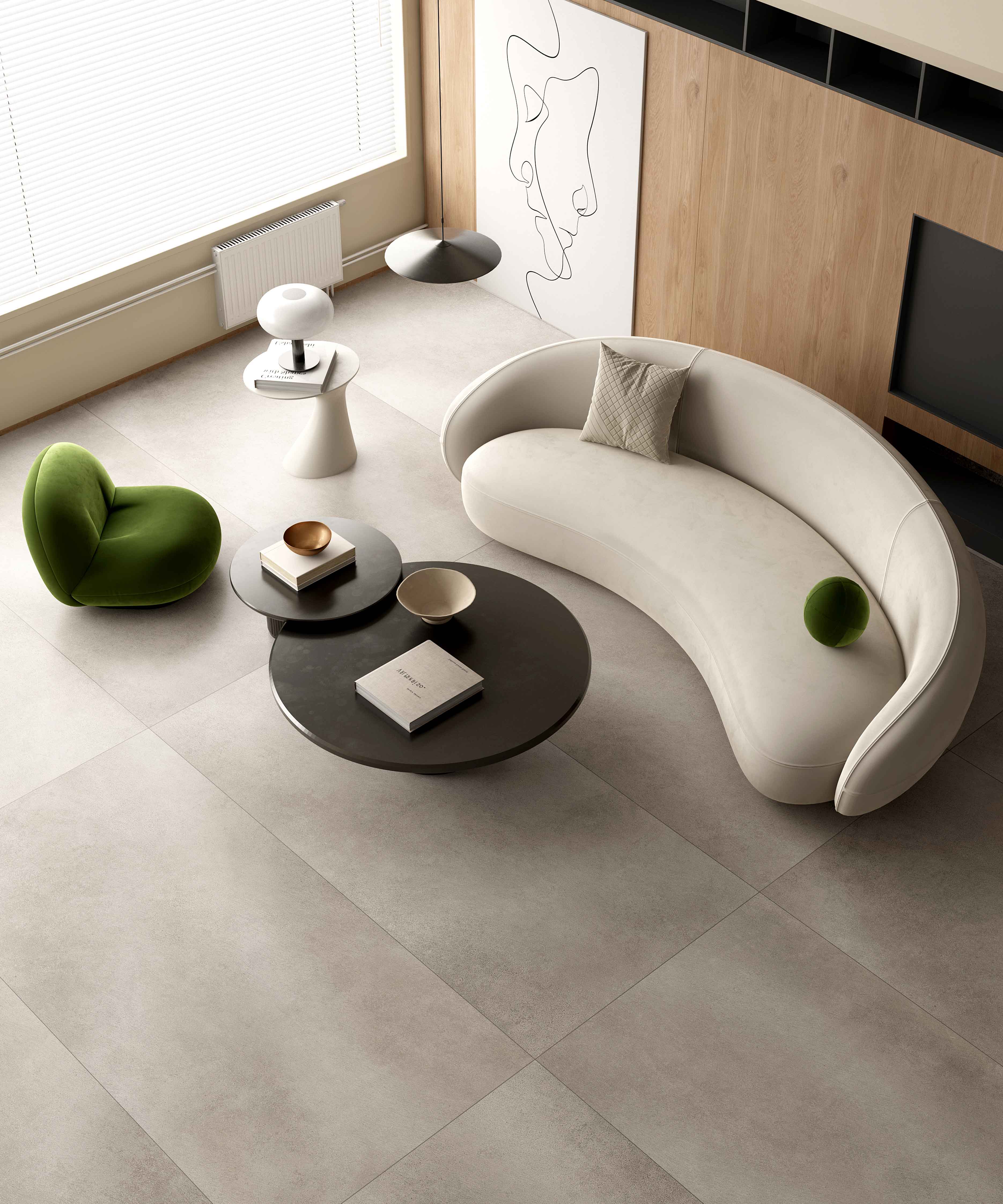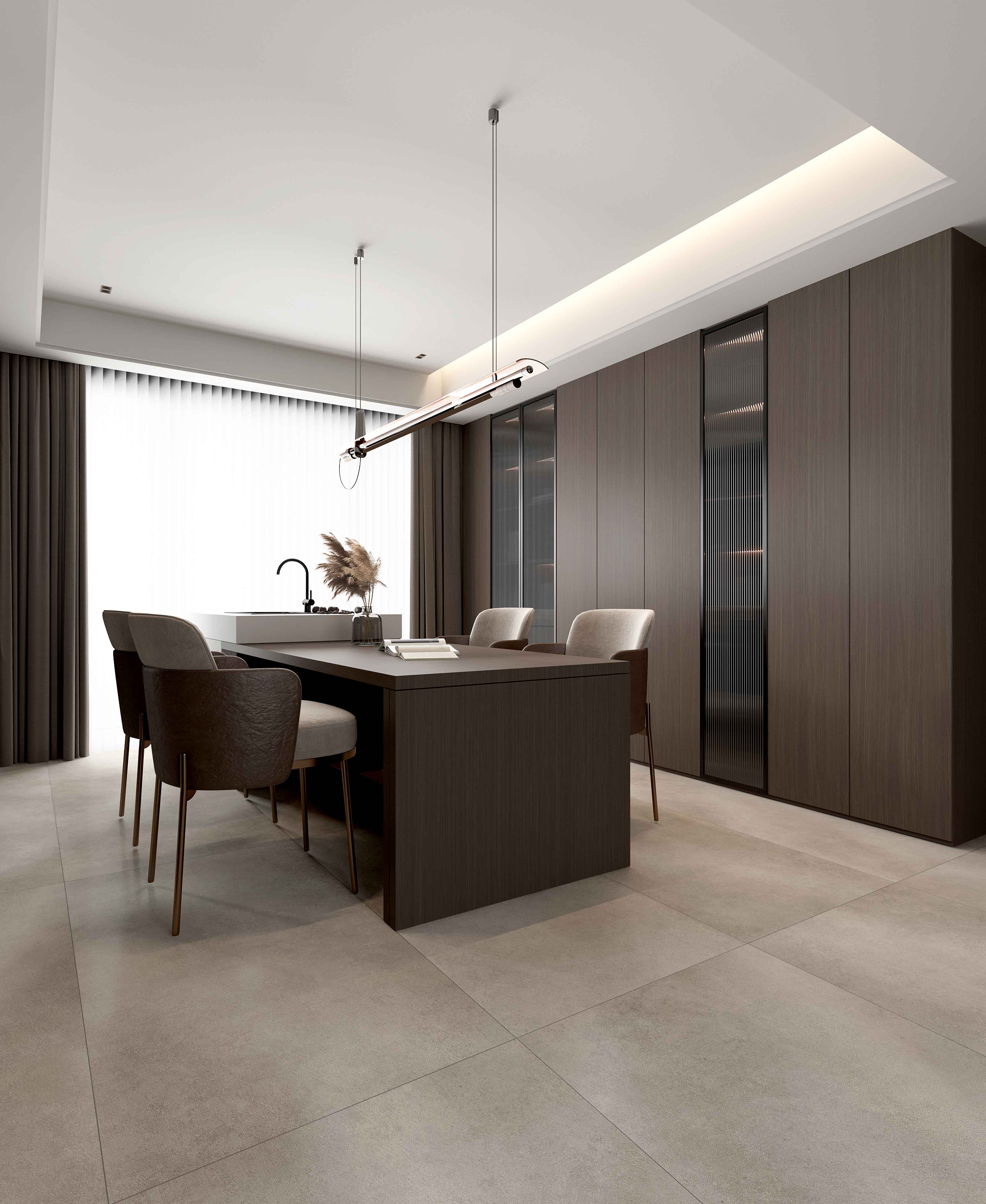 水泥磚為設(shè)計藍(lán)本,融合細(xì)膩柔和的鹿毛為特點(diǎn),自帶格調(diào)美感和神秘感。部分紋理作高光處理,令設(shè)計更生動,整體空間低調(diào)內(nèi)斂而不失細(xì)節(jié)。